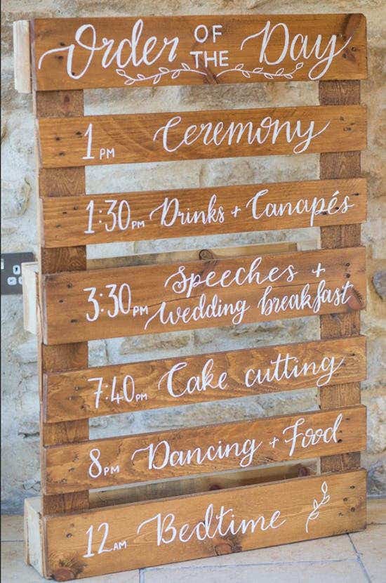 “Our favours were beautiful bespoke log slices with our name, date and venue laser-engraved on them. I also hand wrote calligraphy of the guests’ names on the other side, so they would double up as place settings.”