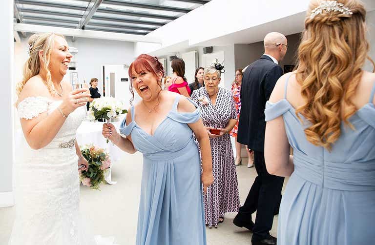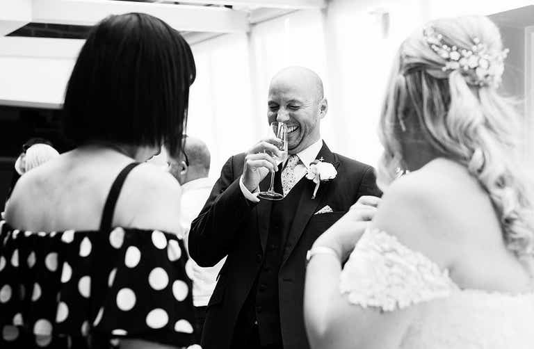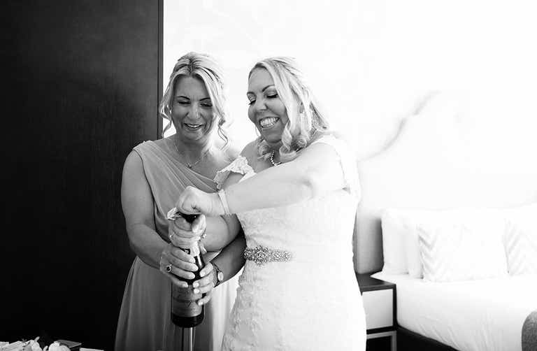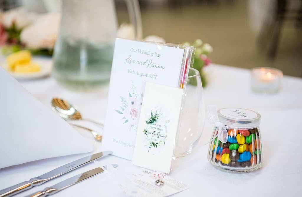 “We also provided party rules on each table with playful rules for our guests. There was a Photobooth too, and this was really the success of the evening. It produced so many fun photos and there was a queue of people waiting to use it all night. Our favours were personalised M&Ms and hangover water, labelled with our names and the date.”