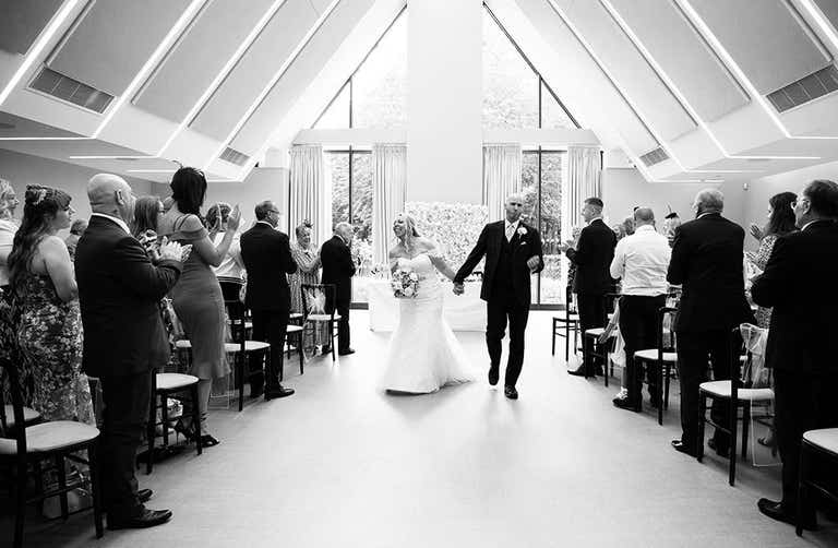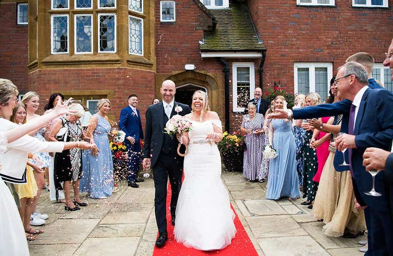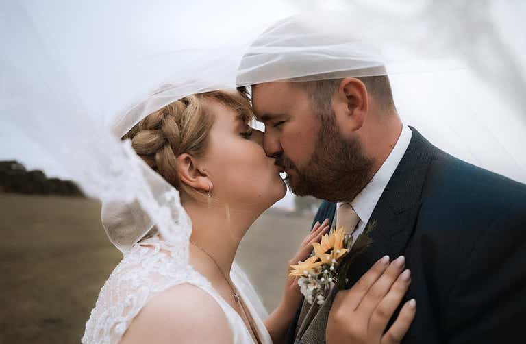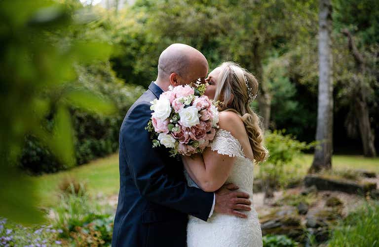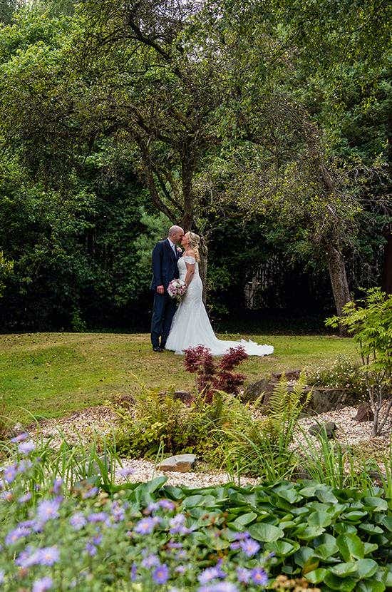 “We were very lucky with the weather and it was a beautiful day from start to finish,” says Lindsey. “We wanted to honour the tradition that my husband shouldn’t see me in the dress beforehand. So, he joined his son in the morning to get him ready while I left for the hairdresser. I had extensions and curls in my hair for the first transformation. Makeup was done at our house by a friend who is a professional make-up artist.”
