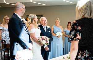 “We didn’t have a ceremony as such, just a wedding in the town hall where my best friend and my husband’s son were our witnesses,” says Lindsey. “For me, the most special moment during the ceremony was exchanging the rings because it all suddenly became very real.”