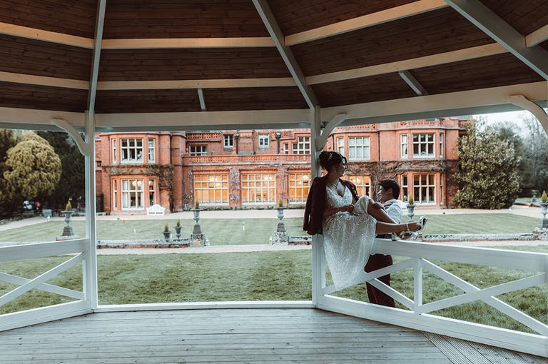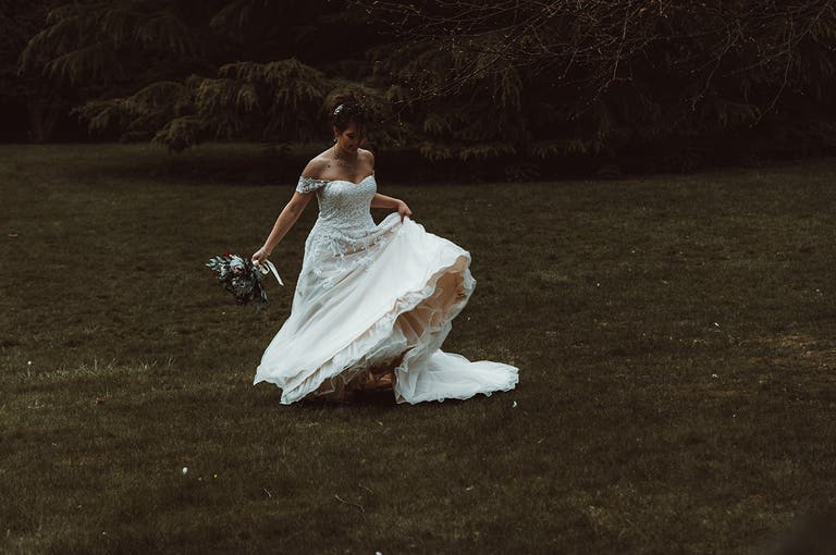 "We had a party at the cottage onsite the night before,” says Bethany. “I even let the groom and his groomsmen enjoy the hot tub there before kicking them out at midnight. My bridesmaids and I then had a chilled morning with croissants and coffee, before we moved over to the main site at 11am. I had my hair and makeup done in the bridal suite but no one kept me informed of the time. I was having fun with the photographers, until I realised I only had 10 minutes to get into my dress. So, I was late to the interview part beforehand and therefore the ceremony. I think I was about half an hour late in the end!”
