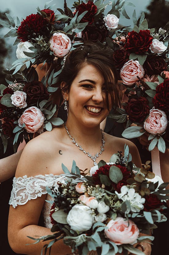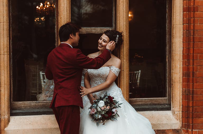 Bethany and Vincent’s burgundy wedding