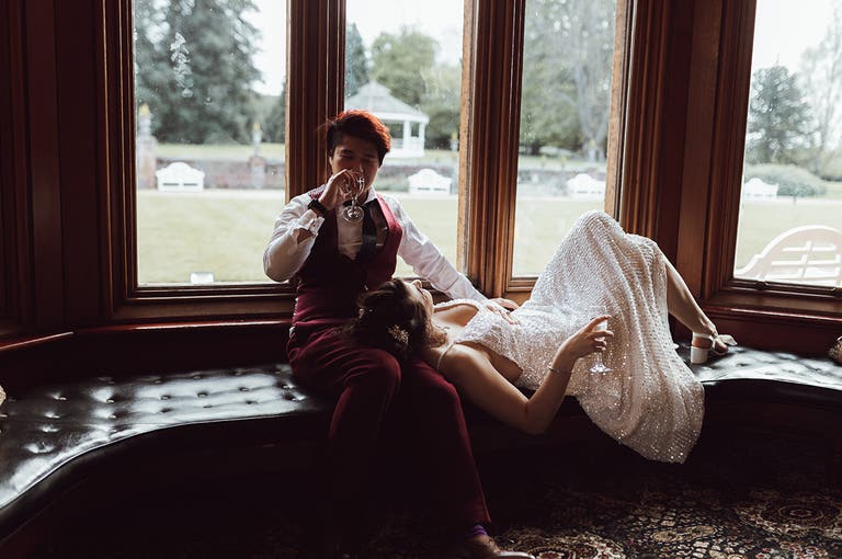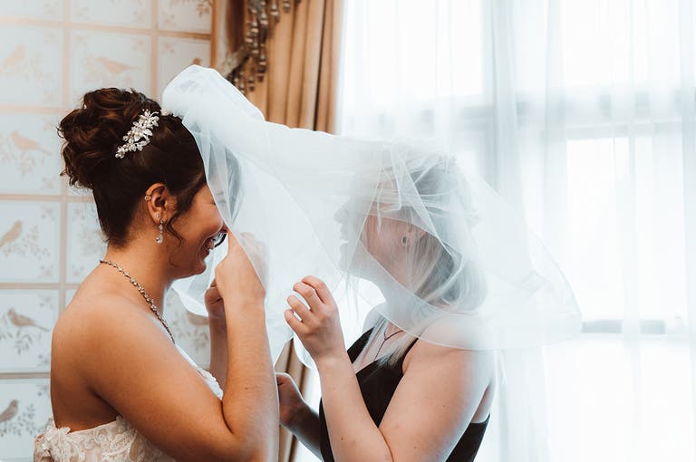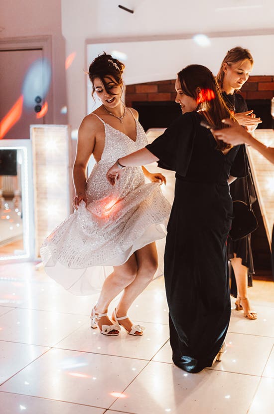 “Make sure you have someone keeping an eye on the time, so you stay on schedule,” says Bethany. “It was so stressful trying to get dressed in 10 minutes, as I then didn’t have time to do the shots with bridesmaids before the ceremony. It’s also worth doing a practice run in your dress beforehand because I found out in those 10 minutes that I couldn’t move my arms above waist level because the straps had been sewed on too tight. During the ceremony, Vinny lifted my arm up to celebrate and popped the strap straight off. I had to stand and fix it at the top of the aisle with everyone staring confused!”