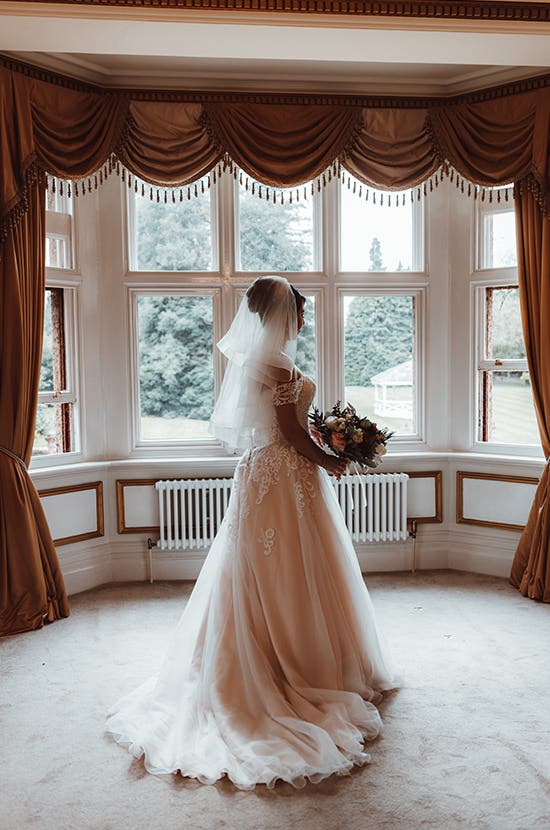 The couple married on 19th April 2022 at Holmewood Hall in Peterborough. “Vinny wanted to get married in a big castle or house and I found Holmewood, which was big and grand but still felt intimate and beautiful,” says Bethany. “I loved that everything was onsite, so we could move through the day easily without having to worry about transport. You could also have the first dance under the chandelier by the staircase, which just felt perfect and gave the best photographs. We chose it largely for the staircase and also for the library, so I could have pictures with the books. We booked a date for just six months after the engagement, as there was a discount for a spring wedding.”