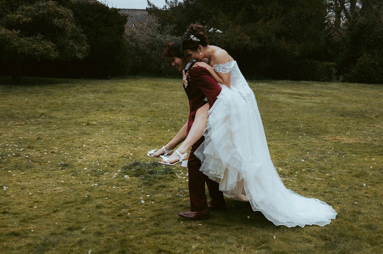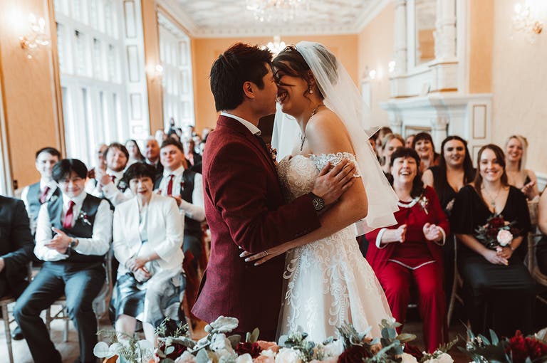 “My favourite moments were the piggyback and Vinny giving me a lap dance, but everything about our burgundy wedding was magical,” says Bethany. “Vinny says his best bit was me walking down the aisle to meet him, and also walking round the grounds with him getting goofy pictures. The photographers told us we kissed more than their usual couples!”