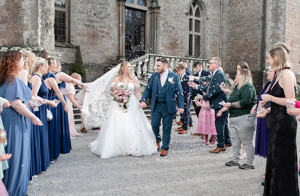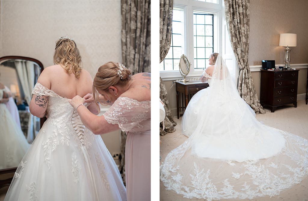 “I got ready with my mum, who was my maid of honour, and my bridesmaids, who are all family,” says Shannon. “They were definitely stressing as much as me! We get ready in the castle grounds. My dad walked me down the aisle to the song ‘Harry Potter VS Star Wars’!”